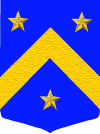 : "d'azur à chevron et étoiles d'or en canton du chef