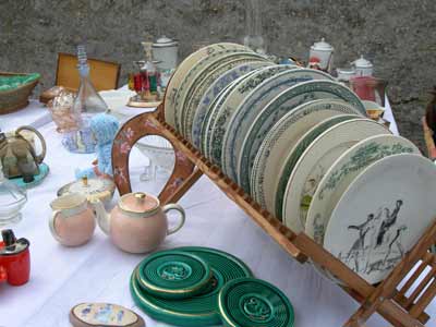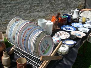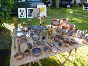 Ce vide-greniers qui a commencé sous quelques gouttes de la fin d'un orage matinal et s'est poursuivi avec le soleil. Dans la salle polyvalente, une exposition de cartes postales, des bijoux, des jouets artisanaux et des broderies.